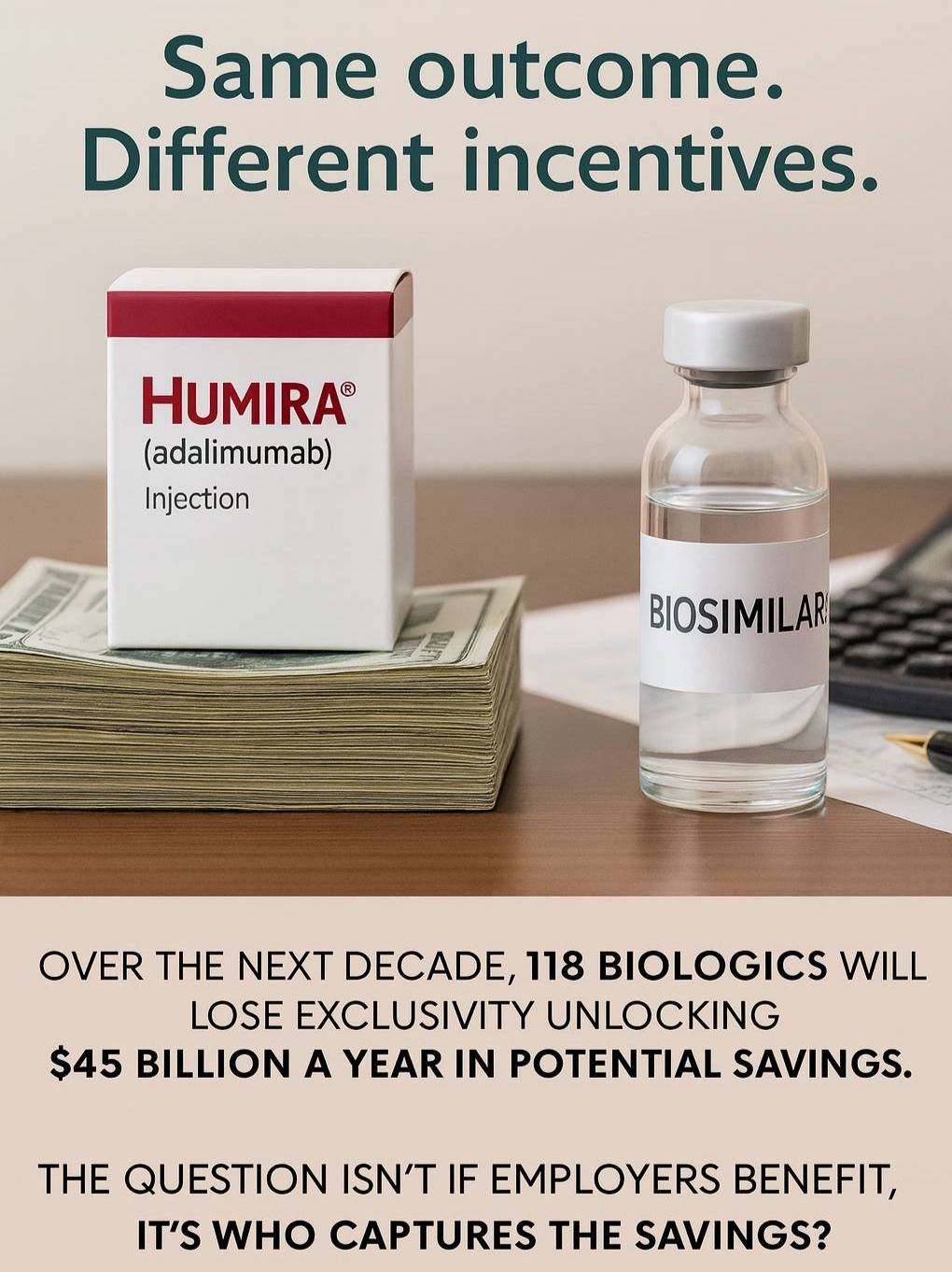 Translation: If you don’t control your biosimilar strategy, your PBM will and you’ll still be paying brand-name prices for generic drugs.