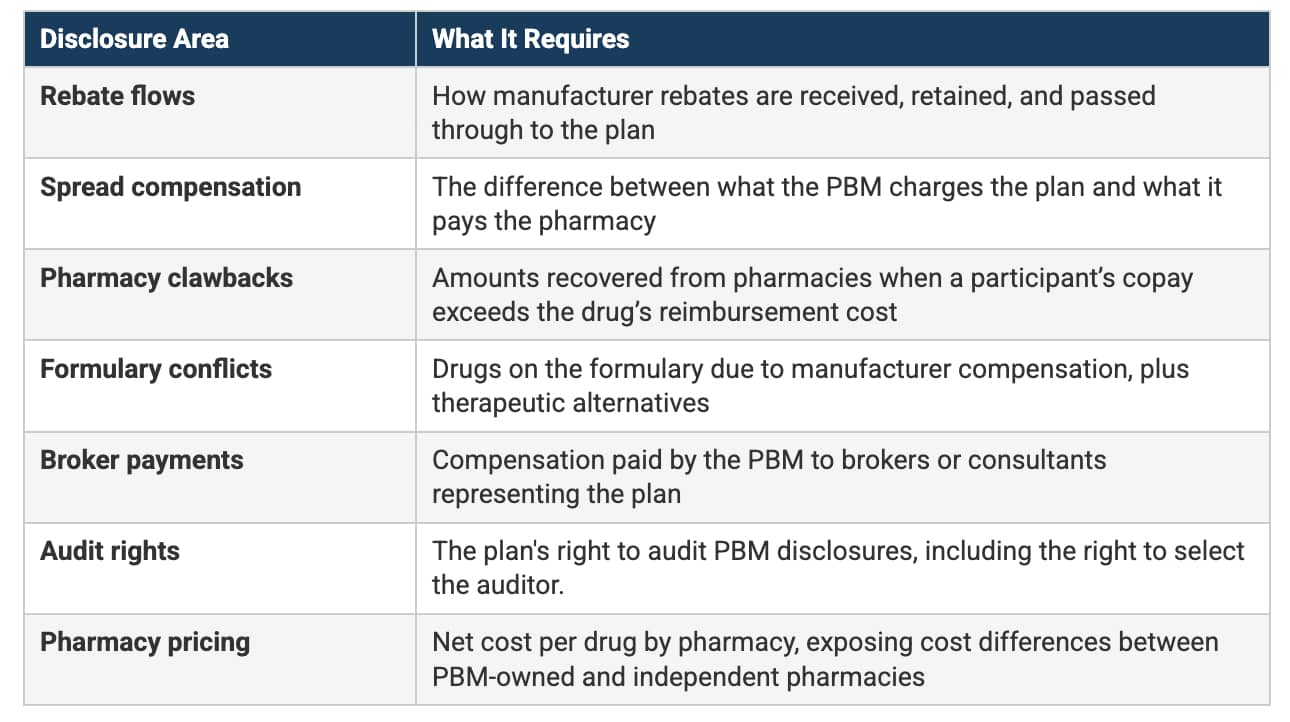 The rule requires PBMs to disclose compensation but says nothing about plan sponsor access to the underlying claims data. Transparency without data access is incomplete. A fiduciary cannot independently verify PBM disclosures, conduct meaningful audits, or evaluate alternative arrangements without unrestricted access to their own plan’s data.