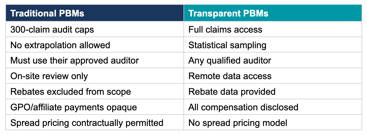 Pull your current PBM contract and find the audit clause. Read every limitation. Note the sample size caps, approved auditor requirements, notice periods, and scope exclusions. If it runs more than two paragraphs with restrictions, you know what that means.