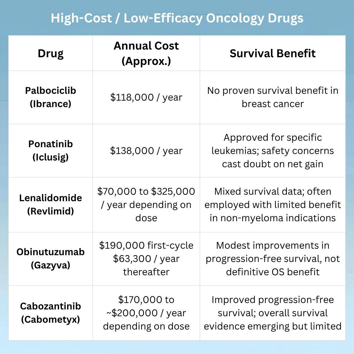 • Limited Benefit: Over half of new cancer drugs approved since 2000 show no survival improvement
