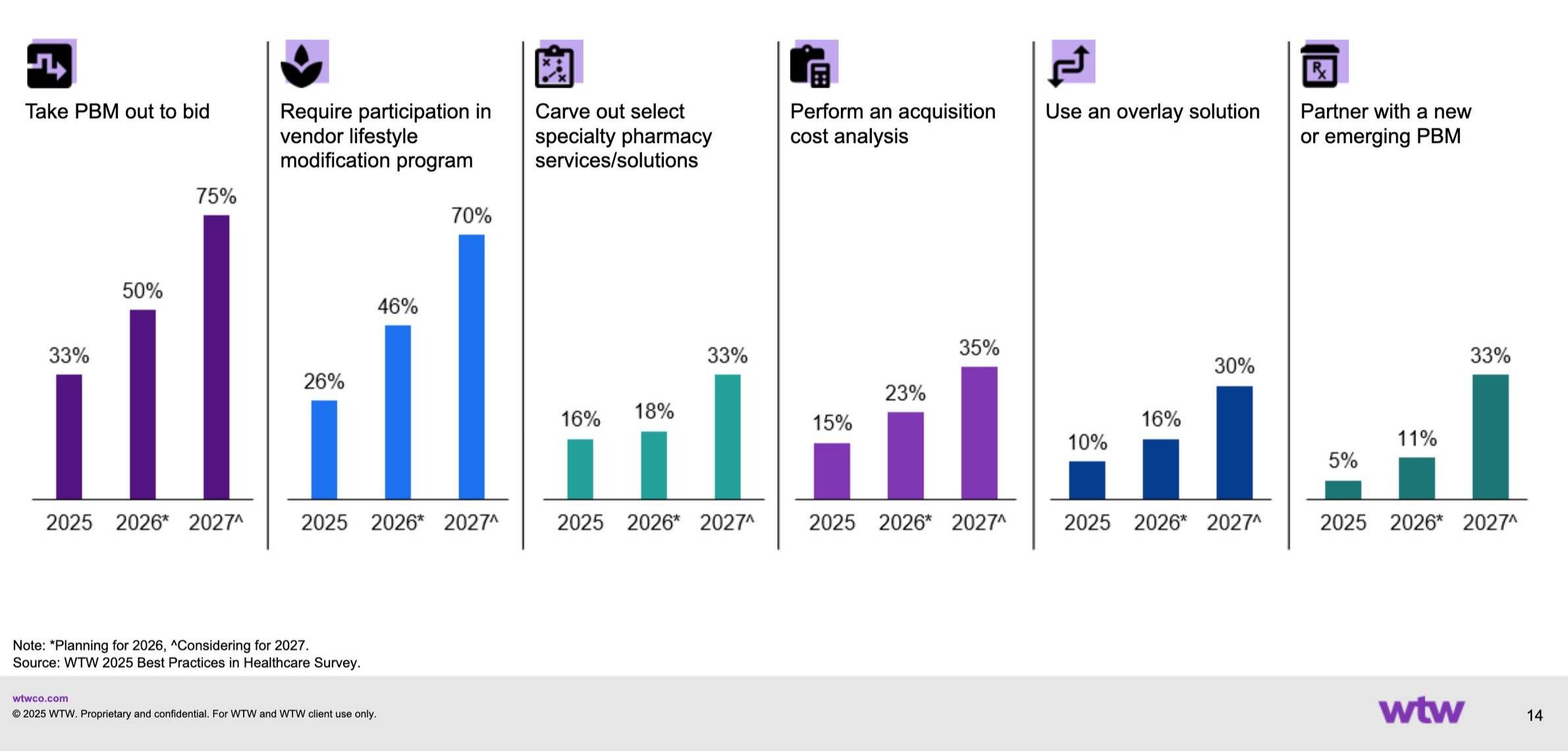 By 2027: ✅ 75% will rebid their PBM ✅ 35% will conduct acquisition-cost analyses ✅ 33% will partner with a new or emerging PBM