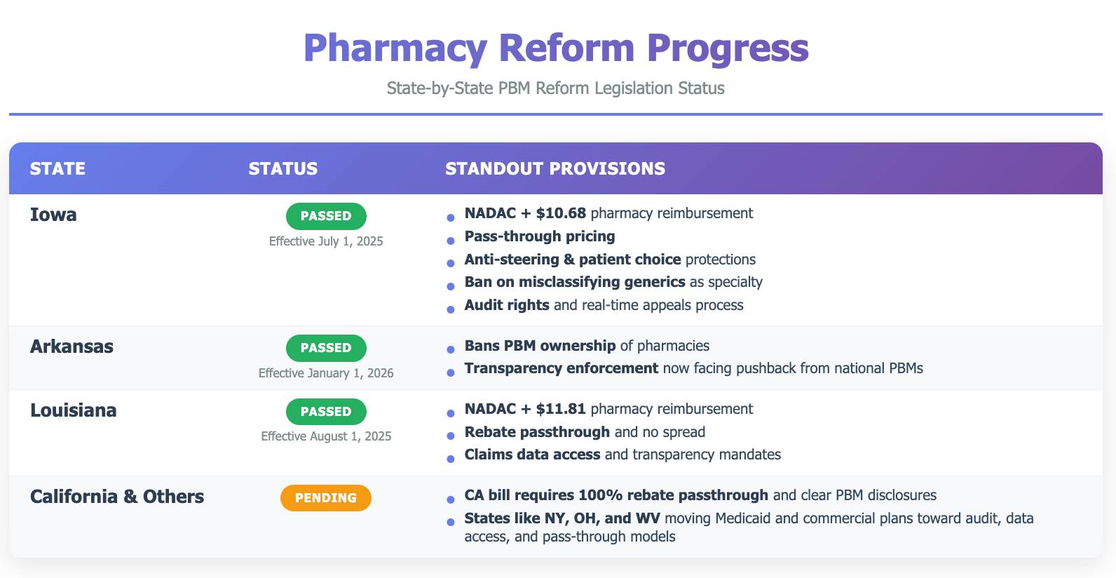 Taken together, these state-level policies form a de facto template for fiduciary-grade pharmacy benefits.