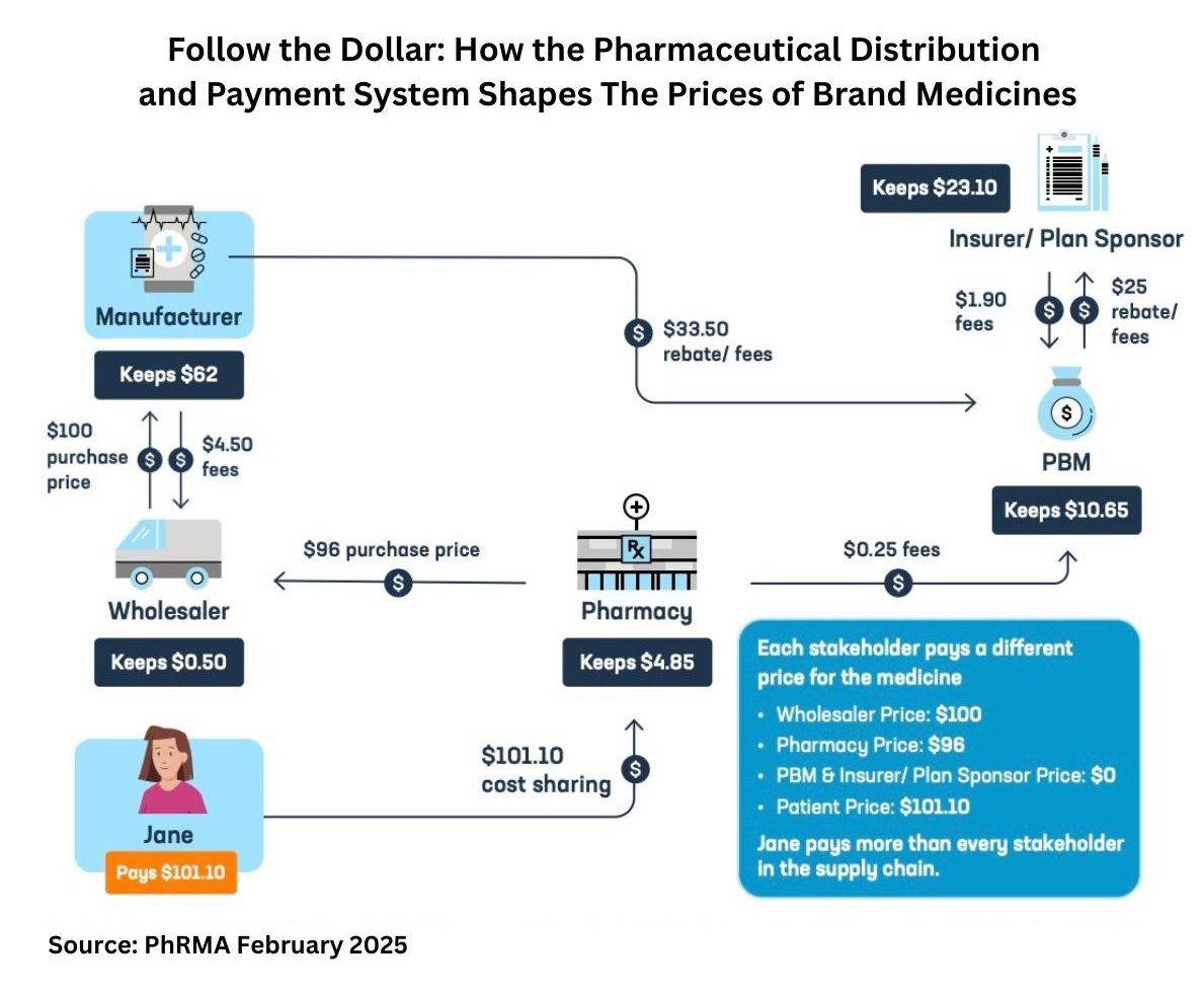 The Pharmaceutical Research and Manufacturers of America (PhRMA) recently published an informative infographic demonstrating the money flows for brand medications.